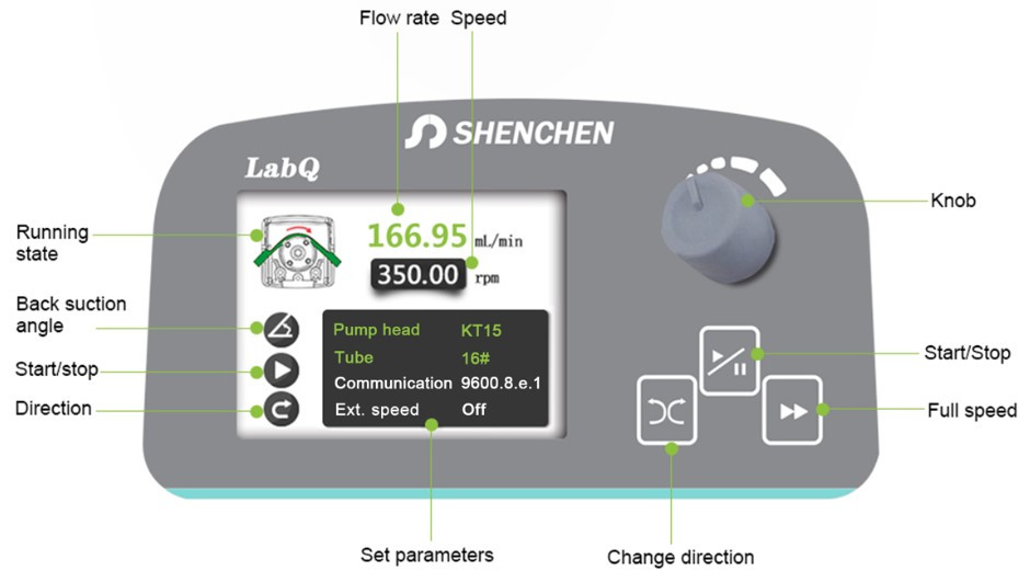 The LabQ laboratory peristaltic pump is ideally suited for continuous dosing applications. The pump has a compact design, is made of ABS plastic housing, is rustproof and antistatic. The flow rate is stable and the working situation of the tube can be easily observed through the transparent head. The peristaltic pump has a low power consumption and is also low-noise. The speed is controlled by the digital knob and with the memory back up, the user setting is saved if power is lost.