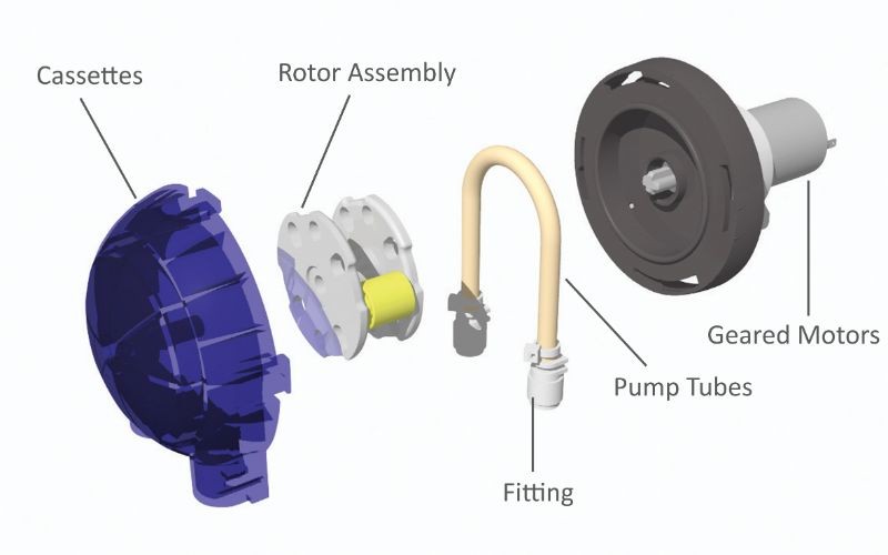 La pompe OEM intégrée WP1100 supporte des débits allant jusqu'à 627 ml par minute, en fonction du moteur et du diamètre du tuyau. La pompe de compression du tuyau est disponible en 5 variantes de couleur.